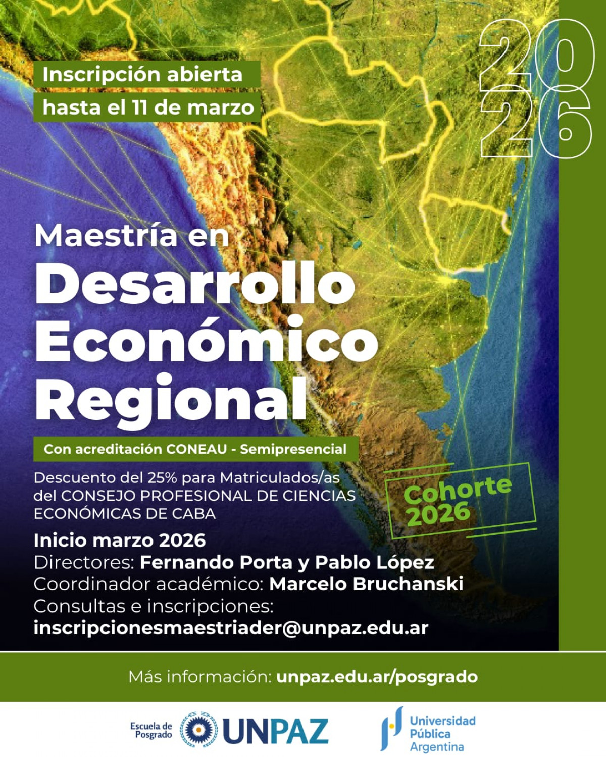 Desde nuestro Consejo te invitamos a participar de la Maestría en Desarrollo Económico Regional que se dictará en la Universidad Nacional de José C. Paz y que inicia en marzo, de manera híbrida, presencial y virtual, los martes, jueves y viernes, a las 18 hs.